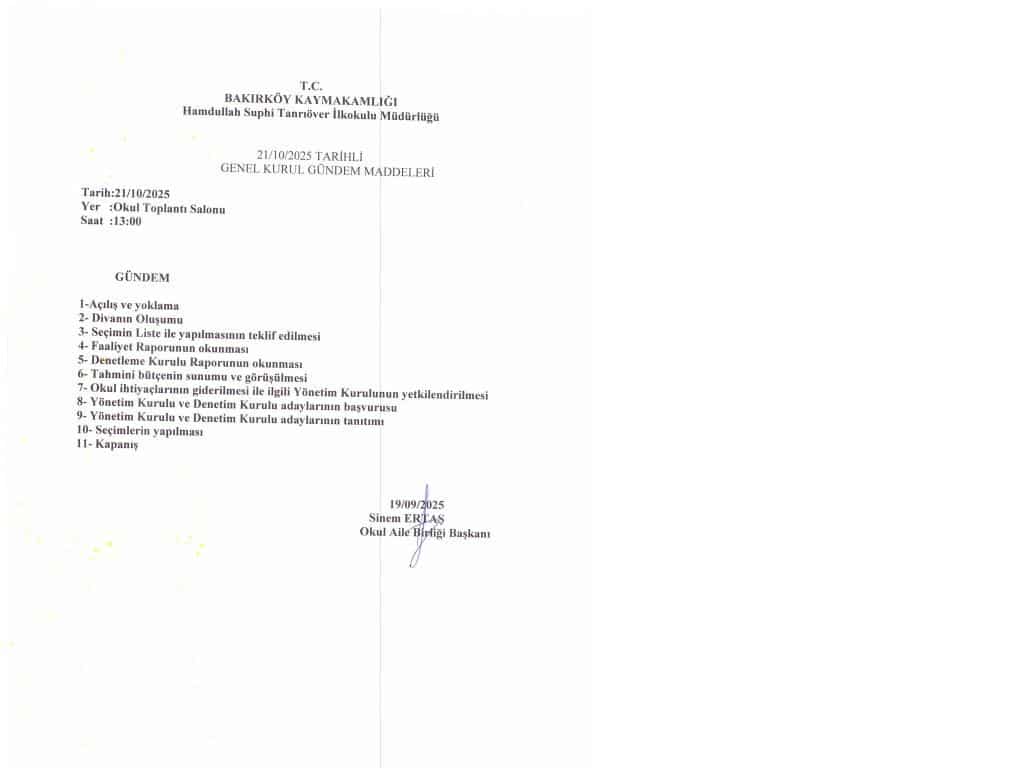 2025/2026 EĞİTİM ÖĞRETİM YILI OKUL AİLE BİRLİĞİ GENEL KURUL TOPLANTISI 21/10/2025 TARİHİNDE SAAT 13:00'DA OKUL TOPLANTI SALONUNDA YAPILACAKTIR.